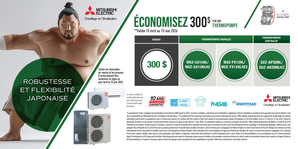 Lire la suiteLe système Mitsubishi Electric Zuba Central est une thermopompe qui vous procure un confort inégalé! Cet appareil de chauffage et de refroidissement est silencieux, compact et efficace jusqu’à des températures extrêmes de -30o Celsius! Le système de conduit peut vous faire économiser de l’espace et d’importants coûts annuels d’énergie. Demandez plus d’informations dès maintenant!